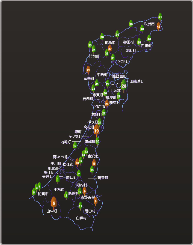 | 19 | 石川県森林公園 | 河北郡津幡町字島越 076-288-1214 |